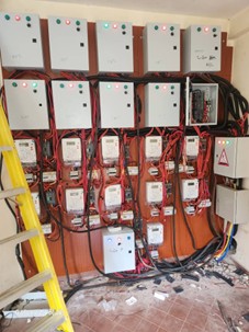 Full installation and interconnection of multiple prepaid electricity meters integrated with dedicated distribution and control boards. This system was engineered to provide accurate, secure, and decentralized power management for a multi-tenant commercial building or residential block. The photo demonstrates our expertise in complex low-voltage distribution wiring, safety compliance, and organized panel termination.